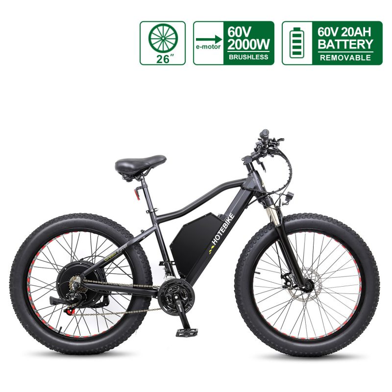 HOTEBIKE 2000 watt electric bike A7AT26 was designed with high power motor and high capacity battery and 26 inch fat tire to provide a superb ride on almost any terrain.