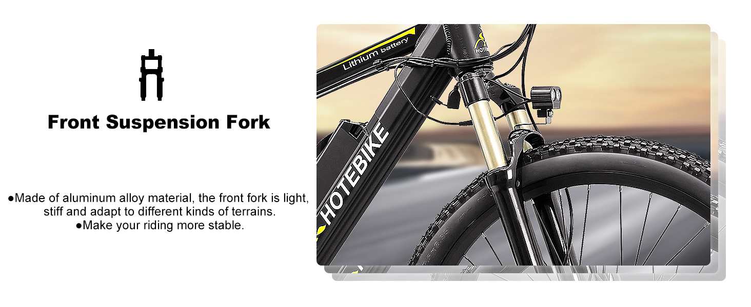 Premium aluminium alloy frame and fork suspension lighten the weight while increasing the durability, help to reduce the frame vibration amplitude and make the riding more stable