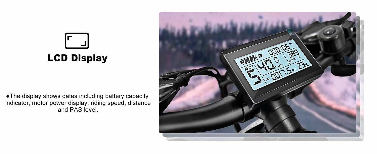 Multifunctional LCD display shows lots of data like Speed, Distance, Voltage, etc. You can change 6 levels of pedal assist with the display and have a more customized riding experience.