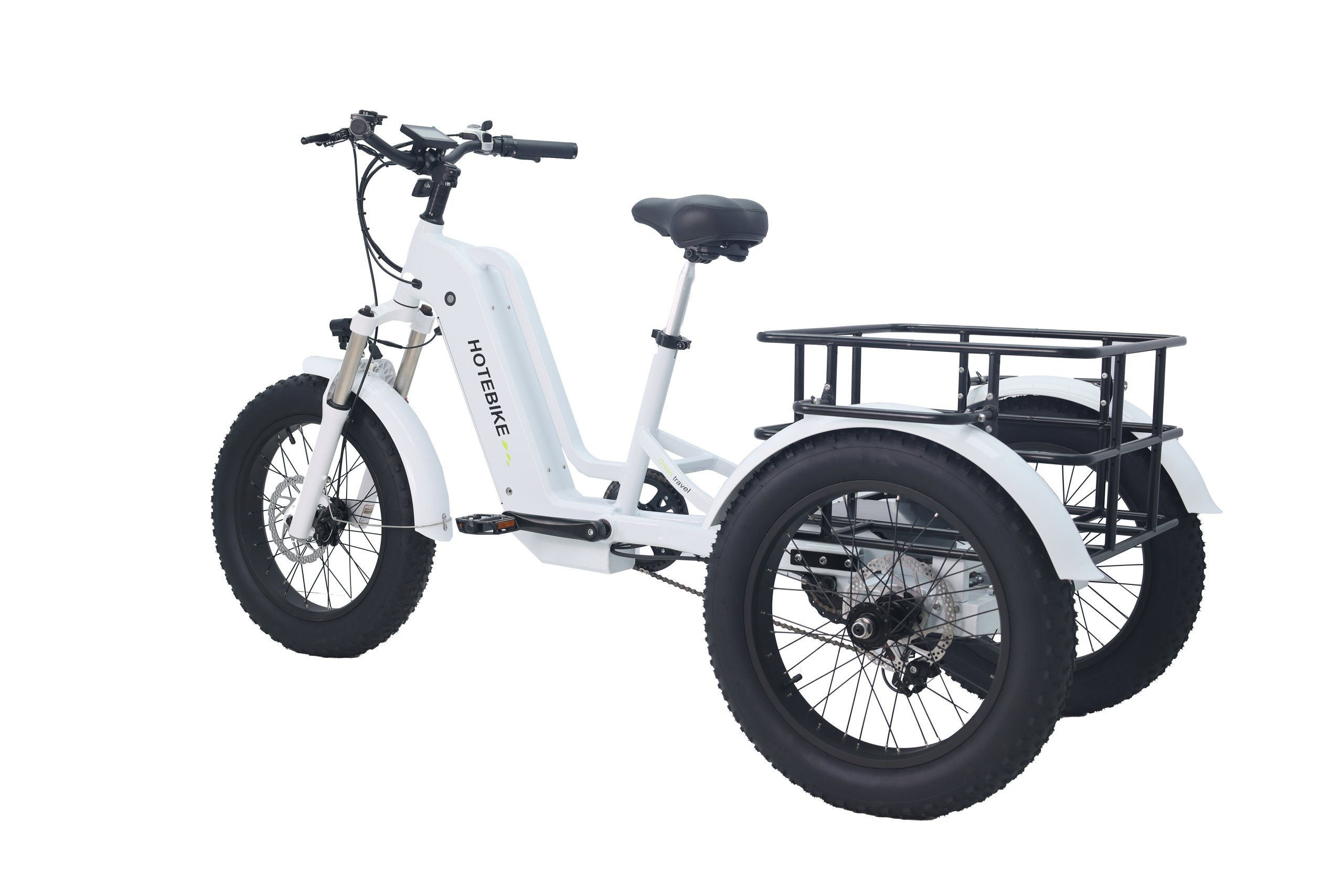 The Hotebike electric tricycle features an IPX5-rated waterproof battery, delivering up to 45 miles of range in pedal-assist mode. High-density battery technology ensures a compact design without compromising performance. You can trust our battery’s exceptional quality and reliability.