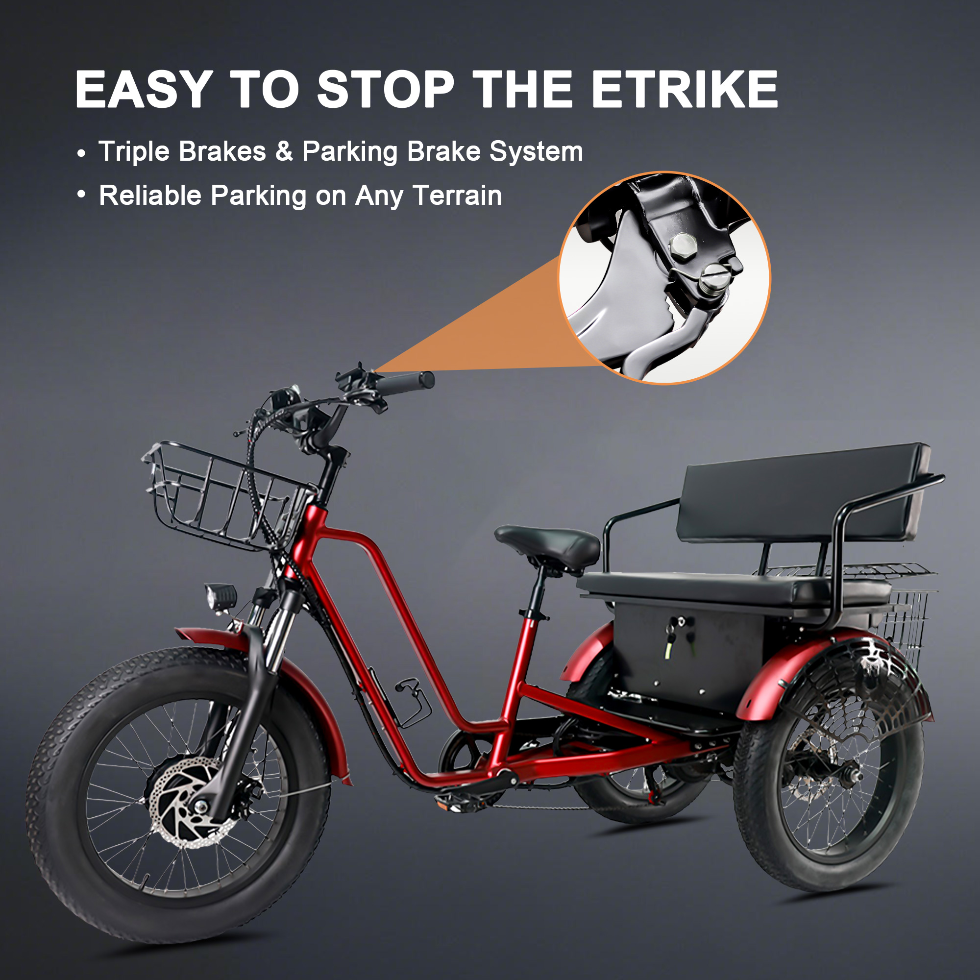 The HOTEBIKE electric tricycle features an innovative differential system designed to enhance your riding experience. This remarkable system allows the rear wheels to operate at different speeds, which significantly improves maneuverability and stability. Whether you’re making sharp turns or executing in-place U-turns, you can enjoy a smooth and secure ride every time.